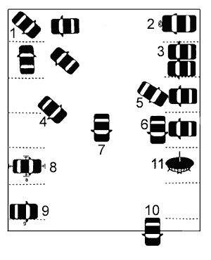 | Есть несколько разных видов парковки: 1.Параноидный - вновь загнан в угол!! 2.Нарциссический (самовлюбленный) - самый большой автомобиль; выдающиеся детали орнамента а/м 3.Зависимый (нуждающийся в поддержке) - использует другие а/м, чтобы чувствовать свою защищенность 4.Пассивно- агрессивный - ставит а/м по диагонали, чтобы захватить два места одновременно 5.Пограничный - упирается в а/м бывшего любовника 6.Антисоциальный - запирает другие а/м 7.Гистрионный (истероидный) - паркуется в центре для достижения драматического, театрального эффекта 8.Навязчивый - абсолютное выравнивание границ а/м в парковочном пространстве 9.Избегающий - прячется в углу (не высовывается) 10.Шизоидный - не переносит близости с другими автомобилями 11.Шизотипальны - межгалактическая парковка